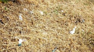 Γεμάτο σκουπίδια φαίνεται να είναι το σημείο, όπου βρίσκεται η ενημερωτική πινακίδα, για τη θέση του αερολιμένα της Σύρου, στην περιφερειακή οδό του Μ...