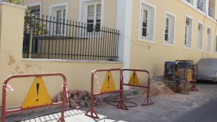 Εργασίες συντήρησης του δαπέδου του αύλειου χώρου του ΚΑΠΗ Ερμούπολης που βρίσκεται στη συμβολή των οδών Κωνσταντίνου Μαρούλη και Μαυρομουστάκη πραγμα...