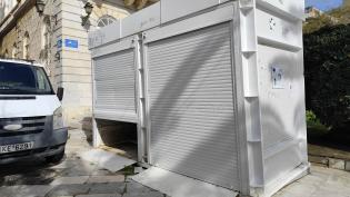 Τα κοντέινερ για τα ηλεκτρικά σκούτερ σχετικά με τις ανάγκες μετακίνησης των ΑΜΕΑ, στην πλατεία Μιαούλη