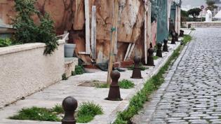 Κατεστραμμένα και σκουριασμένα αρκετά από τα κολωνάκια στην ευρύτερη περιοχή της Πινακοθήκης Κυκλάδων