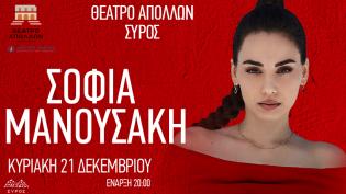 Την Κυριακή 21 Δεκεμβρίου στις 20:00, το ιστορικό Θέατρο Απόλλων υποδέχεται τη Σοφία Μανουσάκη σε μία ξεχωριστή ζωντανή εμφάνιση γεμάτη συναίσθημα, δύ...