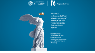Την ημερίδα με τίτλο «e-Aegean CulTour: Μία νέα ερευνητική υποδομή για τον Τουρισμό και τον Πολιτισμό στο Αιγαίο» διοργανώνει το Πανεπιστήμιο Αιγαίου ...