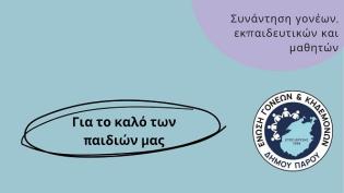 Με επιτυχία πραγματοποιήθηκε το απόγευμα του Σαββάτου 18 Νοεμβρίου η συνάντηση όλων των Συλλόγων Γονέων των σχολείων της Σαντορίνης, που διοργάνωσε η ...