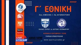 Τη δεύτερη της νίκη στο πρωτάθλημα της Γ’ εθνικής κατηγορίας σημείωσε η Ελλάς Σύρου, η οποία επικράτησε με 6-0 του Αιγέα Πλωμαρίου. Το συγκρότημα του ...