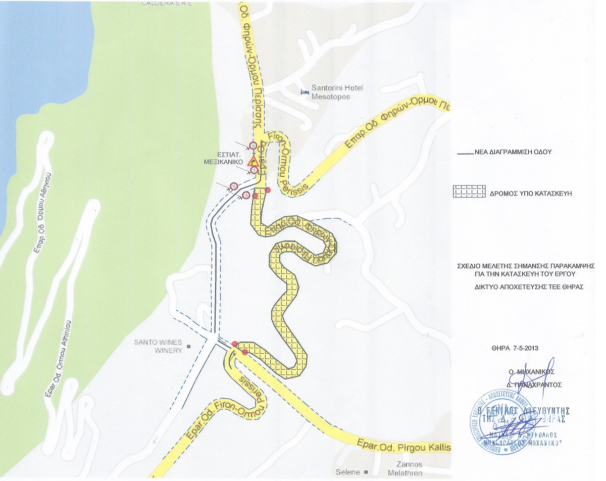 Απαραίτητη κρίνεται η διακοπή της κυκλοφορίας επί του παλαιού δρόμου από την διασταύρωση Πύργου - Εργοστασίου Ένωσης Θηραϊκών Προϊόντων, μέχρι την δια...