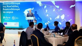 Στα εγκαίνια της Ηλεκτρικής Διασύνδεσης της Νάξου στο Σύστημα Υψηλής Τάσης, με την οποία ολοκληρώθηκε η Β΄ φάση Διασύνδεσης των Κυκλάδων με το Ηπειρω...