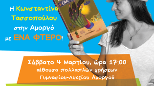 Η συγγραφέας Κωνσταντίνα Τασσοπούλου επισκέπτεται το νησί μας για δεύτερη φορά, για να μας παρουσιάσει το βιβλίο της Ένα Φτερό. Σάββατο 4/5 στην αί...