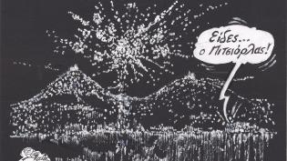 Σκίτσο του Τάκη Χάλαρη με θέμα: "Πυροτεχνήματα από το Νεώριο"