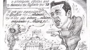 Σκίτσο του Τάκη Χάλαρη με θέμα: "Θεοχαρόπουλος παραπονούμενος"