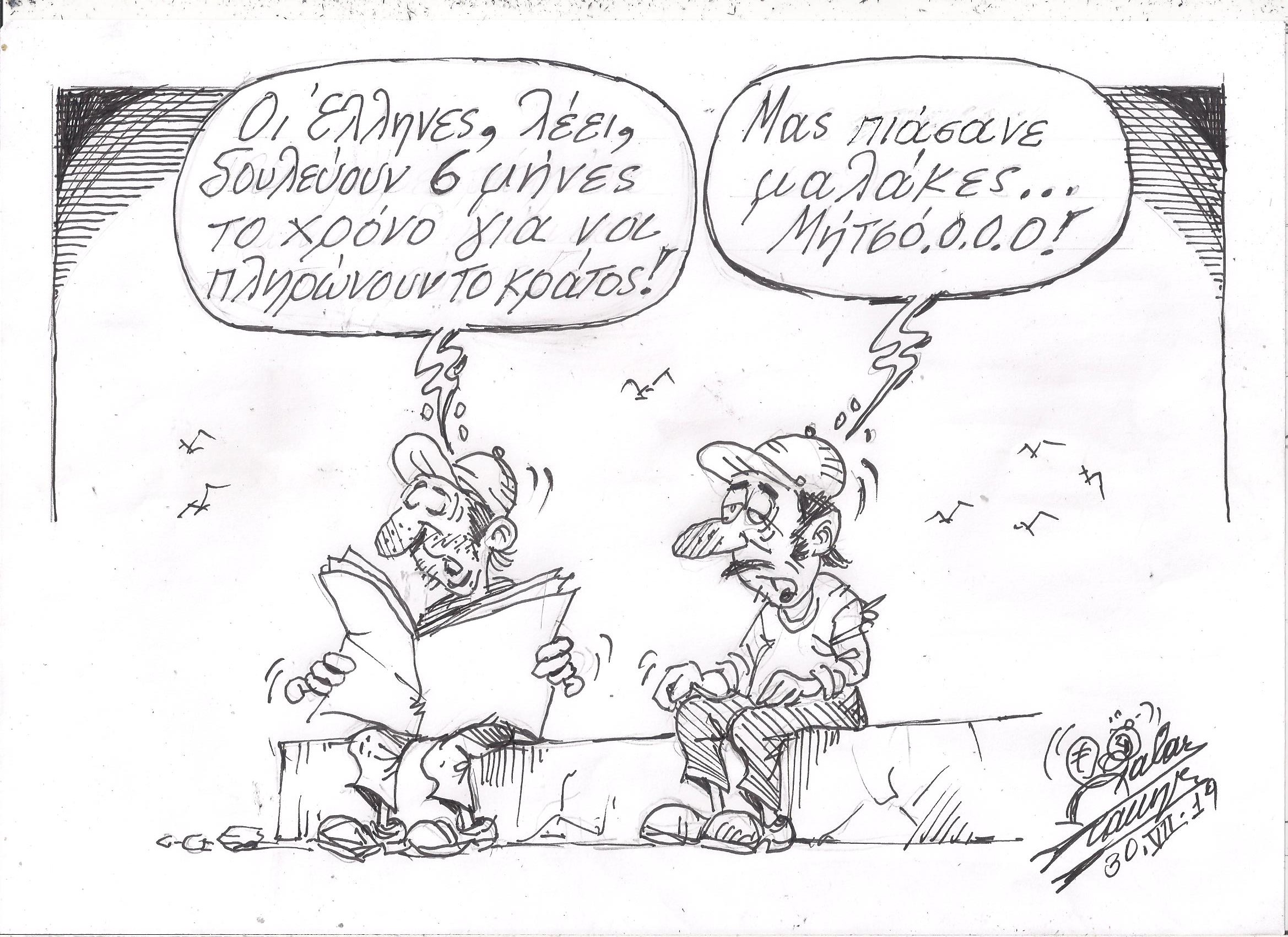 Σκίτσο του Τάκη Χάλαρη με θέμα: "Για φόρους και εισφορές"