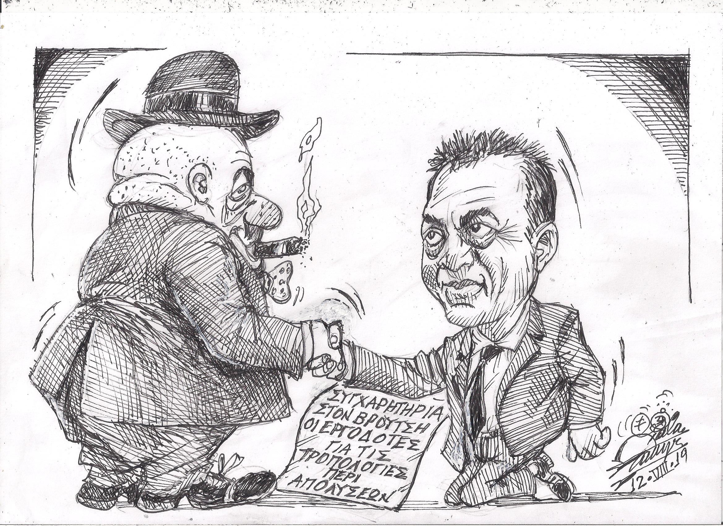 Σκίτσο του Τάκη Χάλαρη με θέμα: "Περί φοροελαφρύνσεων"