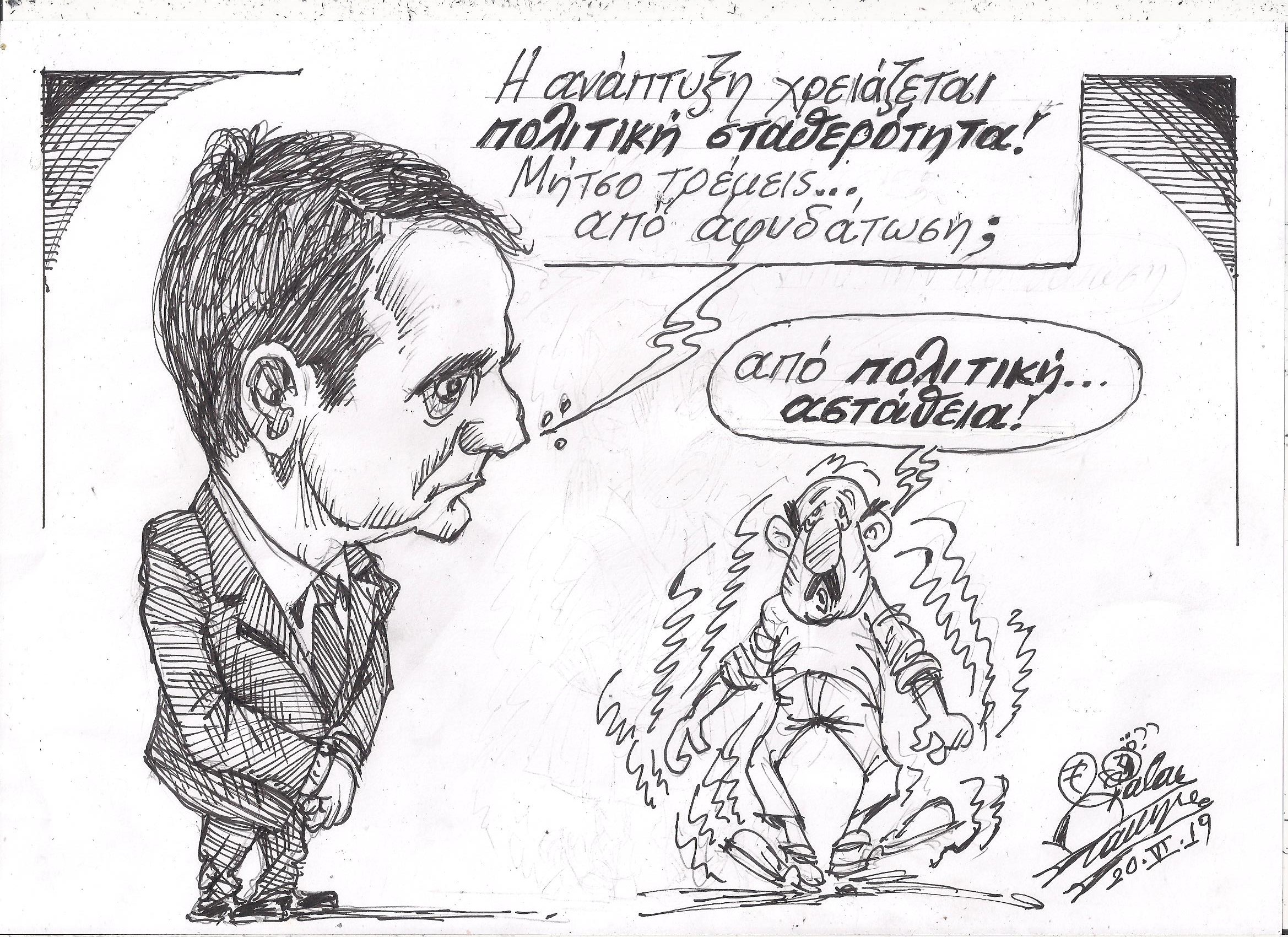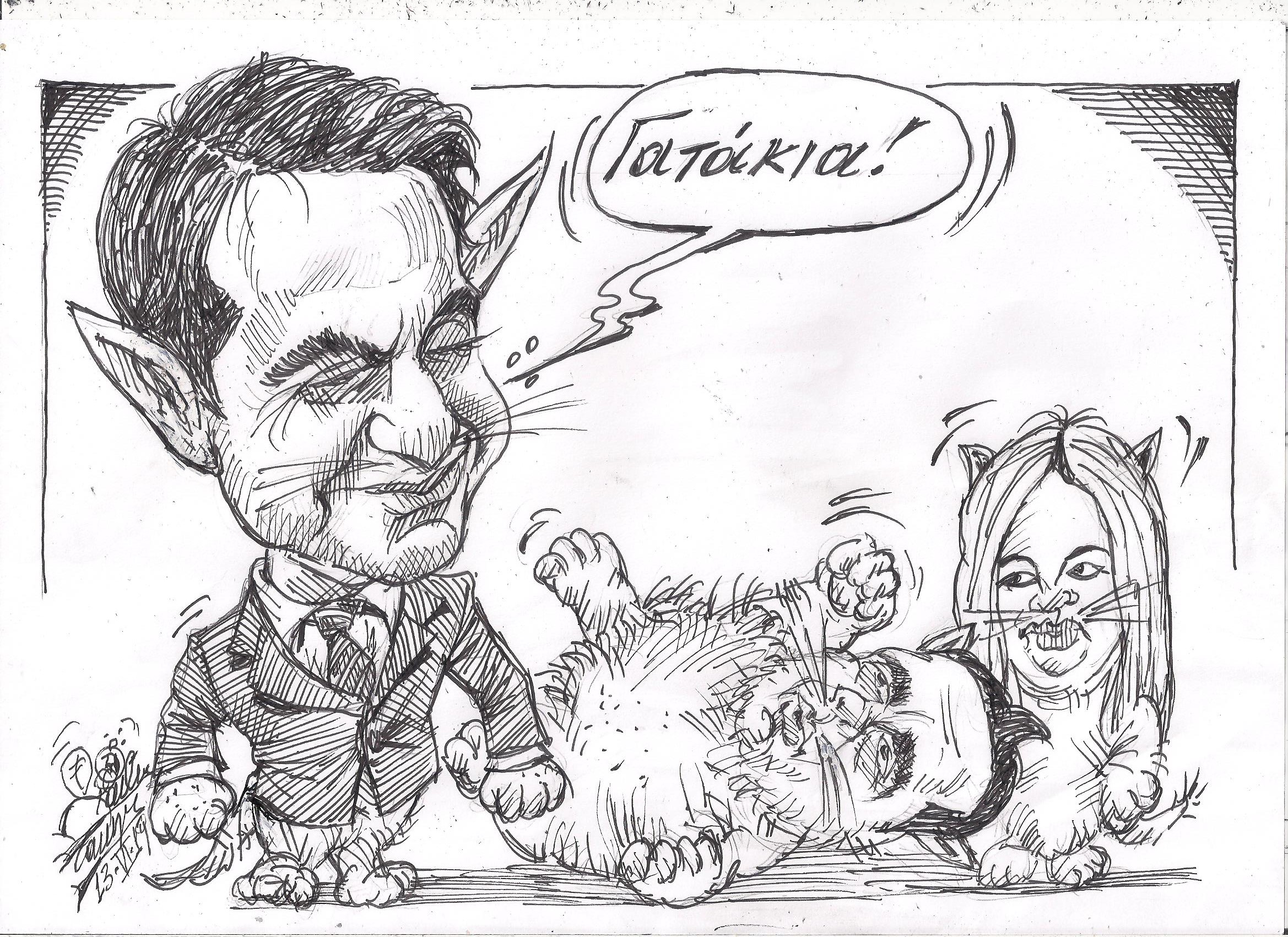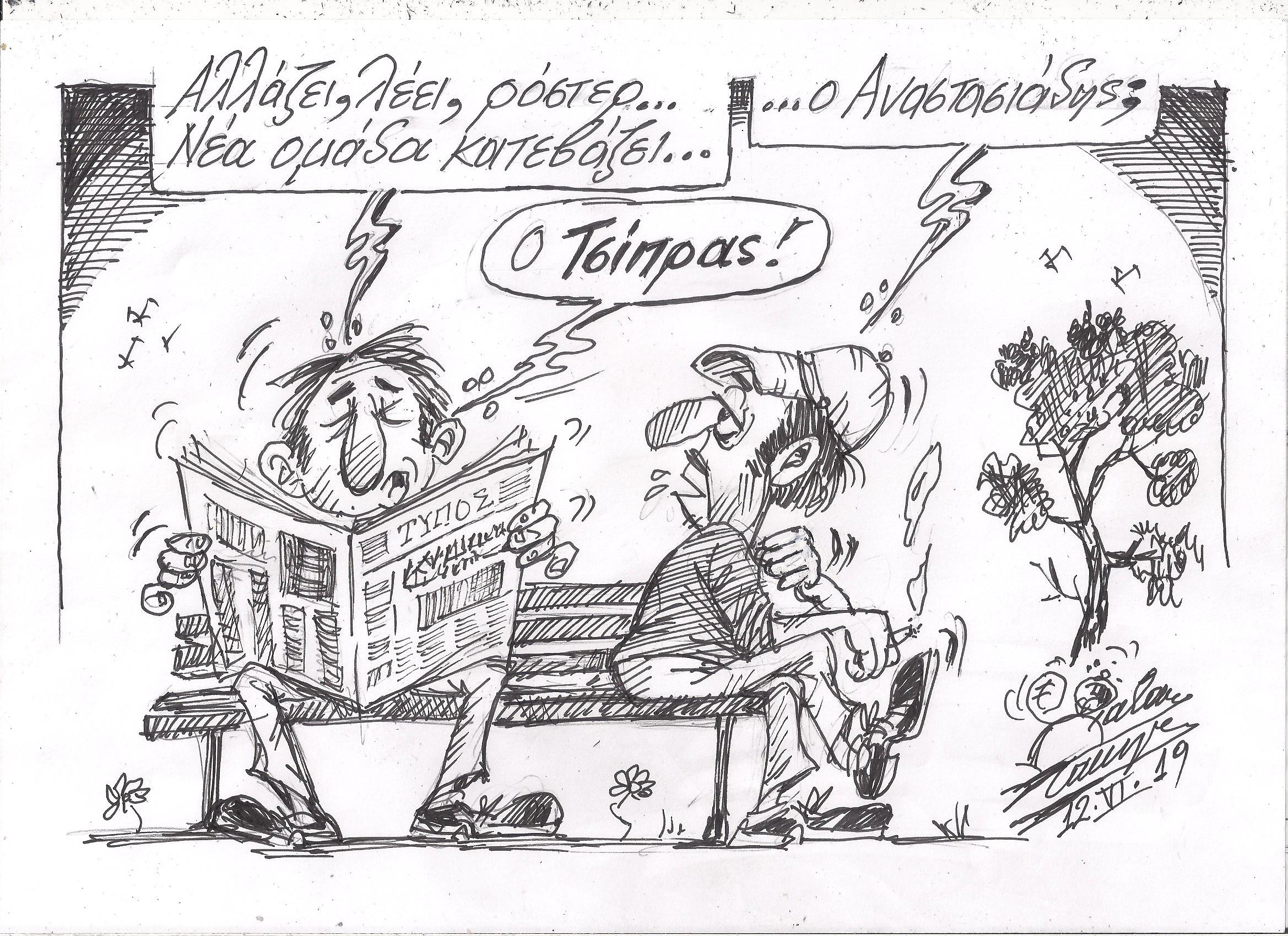 Σκίτσο του Τάκη Χάλαρη με θέμα: "Περί πραγματικής αντιπολίτευσης"