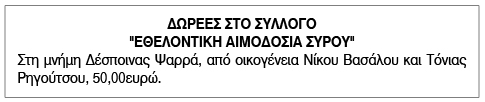 Ευχαριστήριο για δωρεές από την Εθελοντική Αιμοδοσία Σύρου Κείμενο Βλέπε εικόνα. Αριθμός Φύλλου: 6178 Κατηγορία: Δωρεές