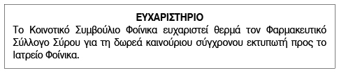 Ευχαριστήριο Κοινότητας Φοίνικα για δωρεά εκτυπωτή στο Ιατρείο Φοίνικα