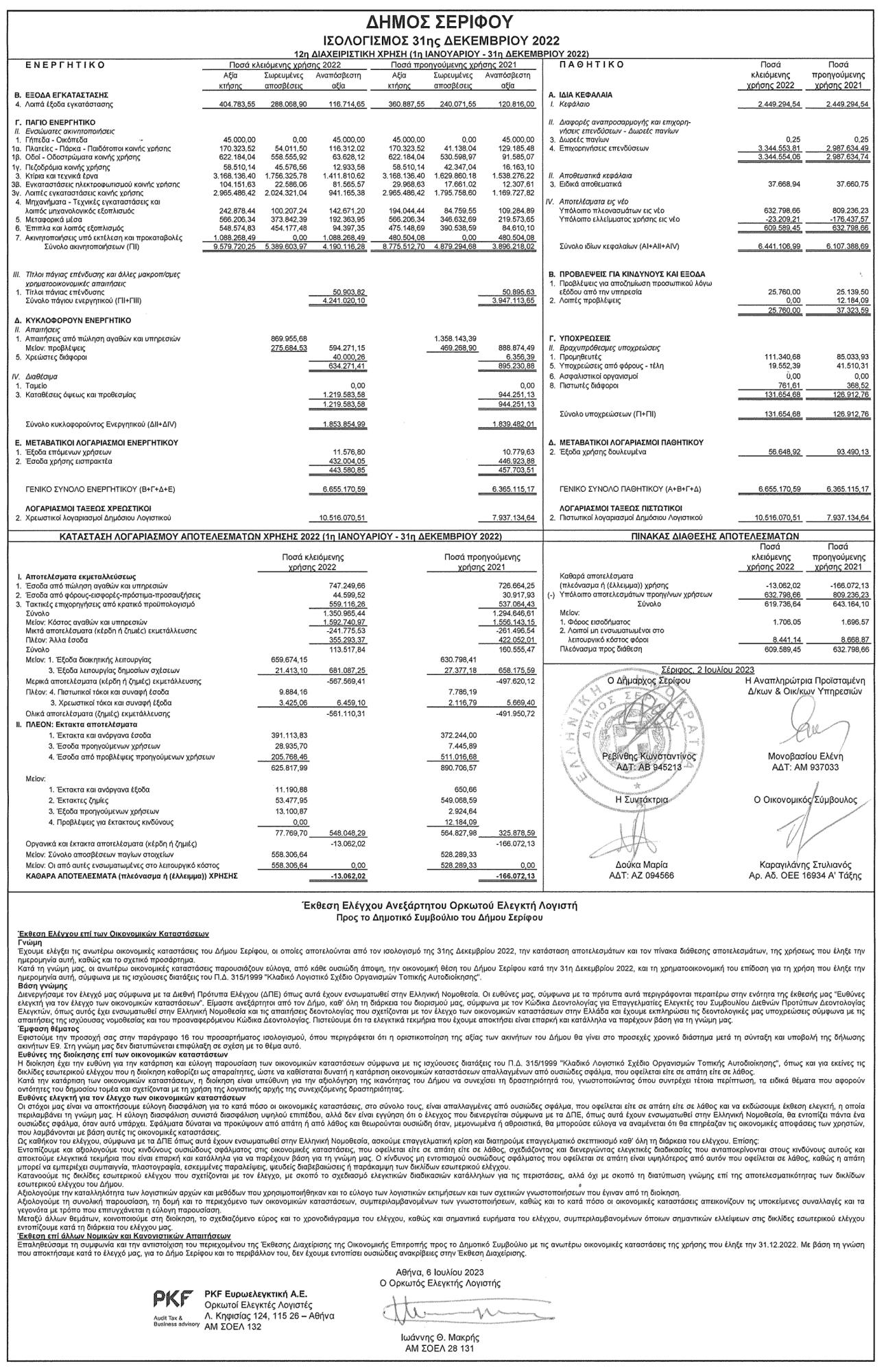 Ισολογισμός 31ης Δεκεμβρίου 2022, από το Δήμο Σερίφου Κείμενο Βλέπε εικόνα. Αριθμός Φύλλου: Αριθμός Φύλλου 6196 Κατηγορία: Κατηγορία Ισολογισμοί
