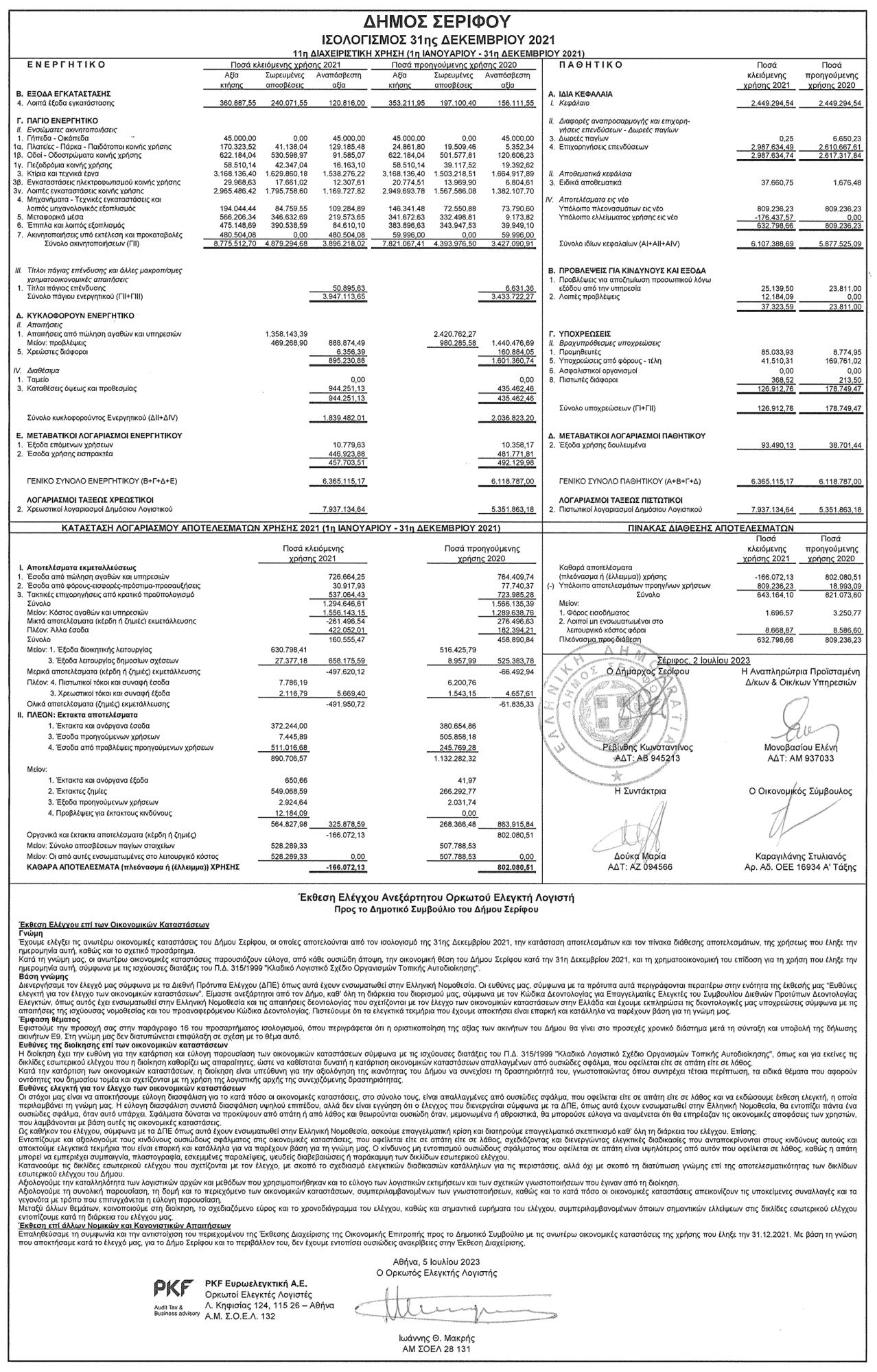 Ισολογισμός 31ης Δεκεμβρίου 2021, από το Δήμο Σερίφου Κείμενο Βλέπε εικόνα. Αριθμός Φύλλου: Αριθμός Φύλλου 6196 Κατηγορία: Κατηγορία Ισολογισμοί