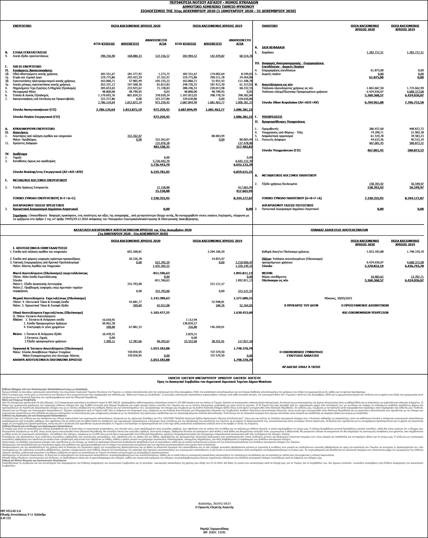 Ισολογισμός της 31ης Δεκεμβρίου 2020, από Δημοτικό Λιμενικό Ταμείο Μυκόνου Κείμενο Βλέπε εικόνα. Αριθμός Φύλλου: Αριθμός Φύλλου 6198 Κατηγορία: Κατηγορία Ισολογισμοί
