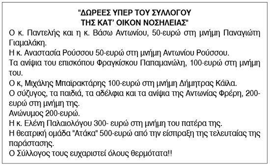 Δωρεές Συλλόγου Κατ' Οίκον Νοσηλείας