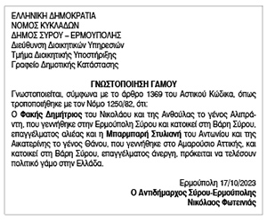 Γνωστοποίηση Γάμου Φακή Δημητρίου και Μπαρμπαρή Στυλιανής Κείμενο Βλέπε εικόνα Αριθμός Φύλλου: 6228 Κατηγορία: Γνωστοποίηση Γάμου