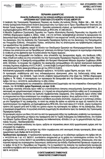 Προσθήκη κατ' επέκταση στο κέντρο υγείας Αμοργού, από τη Μονάδα Συμβάσεων Στρατηγικής Σημασίας του Ταμείου Αξιοποίησης Ιδιωτικής Περιουσίας του Δημοσίου Α.Ε. (ΤΑΙΠΕΔ)