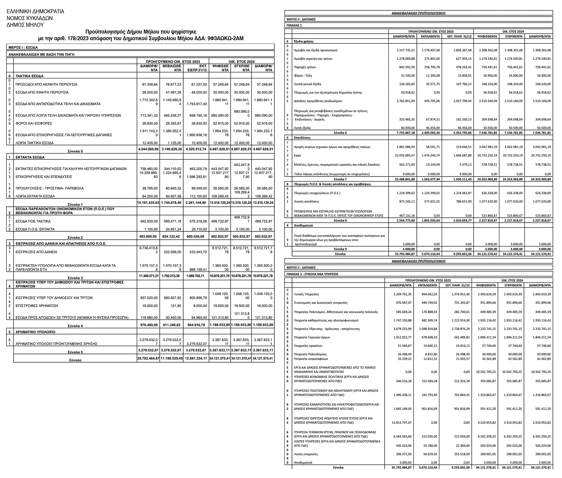 Προϋπολογισμός 2024 Δήμου Μήλου Κείμενο Βλέπε εικόνα. Αριθμός Φύλλου: Αριθμός Φύλλου 6299 Κατηγορία: Κατηγορία Προϋπολογισμοί