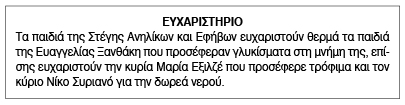 Ευχαριστήριο για δωρεά, από τη Στέγη Ανηλίκων και Εφήβων Σύρου Κείμενο Βλέπε εικόνα. Αριθμός Φύλλου: Αριθμός Φύλλου 6302 Κατηγορία: Κατηγορία Δωρεές