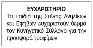 Ευχαριστήριο για δωρεά από τη Στέγη Ανηλίκων και Εφήβων Σύρου Κείμενο Βλέπε εικόνα. Αριθμός Φύλλου: Αριθμός Φύλλου 6325 Κατηγορία: Κατηγορία Δωρεές