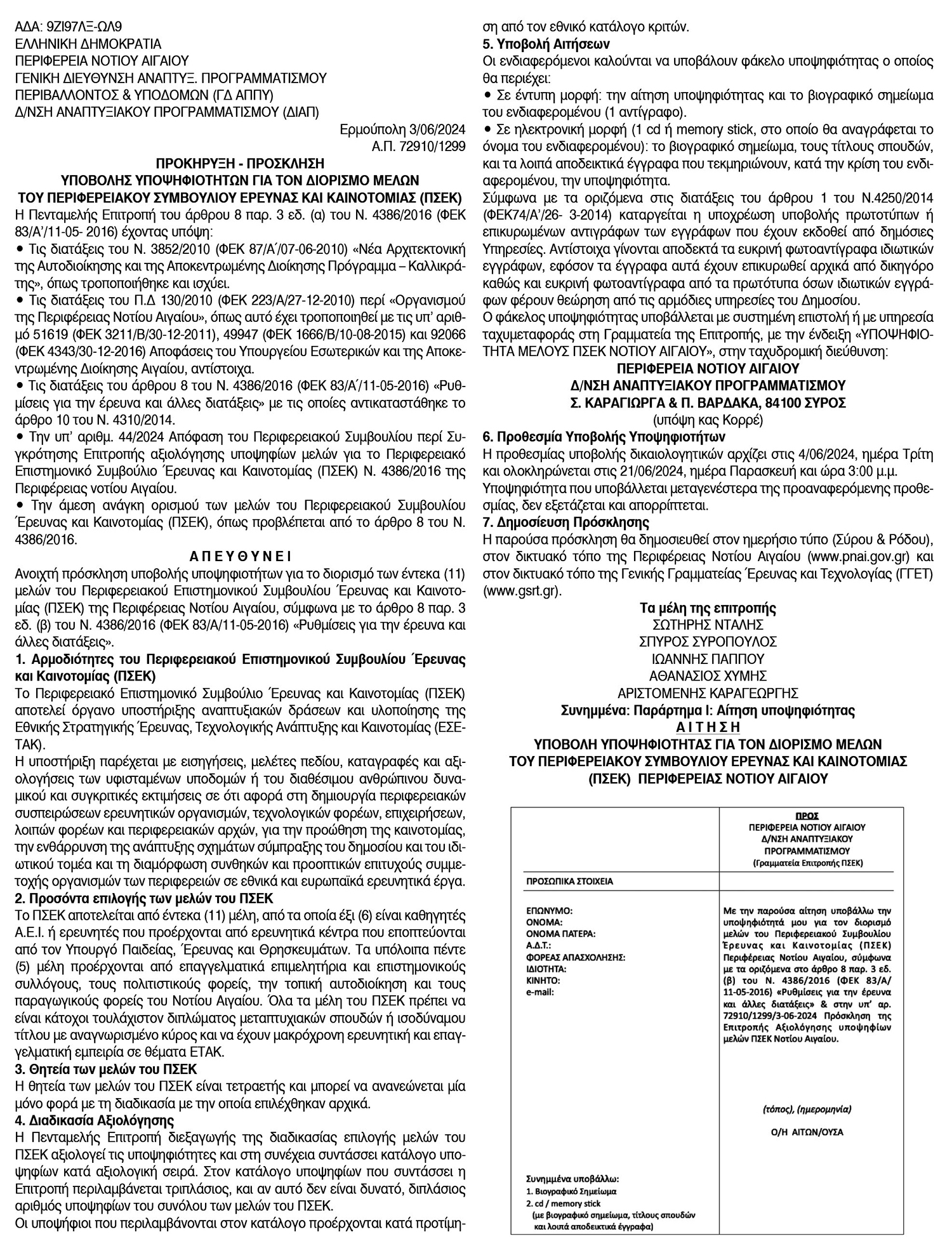 Πρόσκληση για την υποβολή υποψηφιοτήτων για τον διορισμό μελών του Περιφερειακού Συμβουλίου έρευνας και καινοτομίας (ΠΣΕΚ), από την Περιφέρεια Ν. Αιγαίου