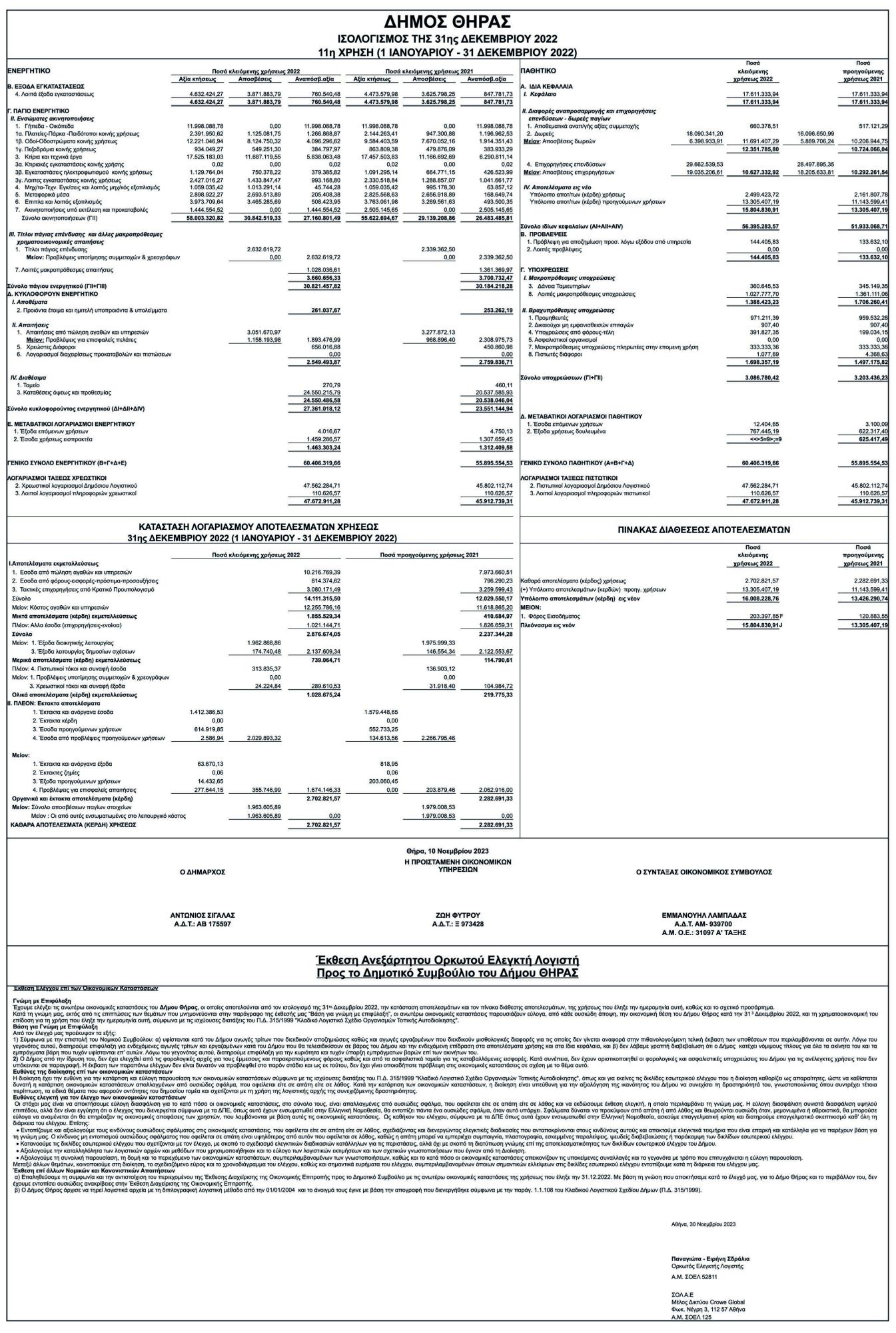 Ισολογισμός της 31ης Δεκεμβρίου 2022, από το Δήμο Θήρας Κείμενο Βλέπε εικόνα. Αριθμός Φύλλου: Αριθμός Φύλλου 6399 Κατηγορία: Κατηγορία Ισολογισμοί