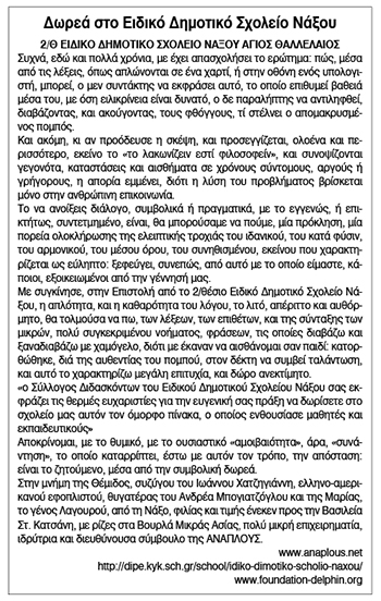 Δωρεά στο ειδικό Δημοτικό Σχολείο Νάξου