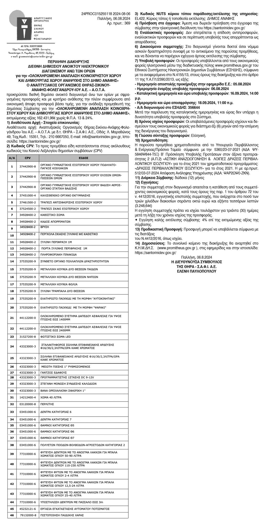 Ολοκληρωμένη ανάπλαση κοινόχρηστου χώρου & δημιουργίας χώρου αναψυχής στο Δήμο Ανάφης Κείμενο Βλέπε εικόνα. Αριθμός Φύλλου: Αριθμός Φύλλου 6428 Κατηγορία: Κατηγορία Προκήρυξη Έργων - Δημοπρασίες