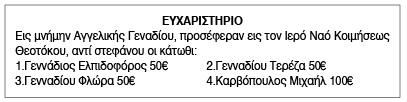 Ευχαριστήριο για δωρεές από τον Ιερό Ναό Κοιμήσεως της Θεοτόκου Σύρου Κείμενο Βλέπε εικόνα. Αριθμός Φύλλου: Αριθμός Φύλλου 6447 Κατηγορία: Κατηγορία Δωρεές