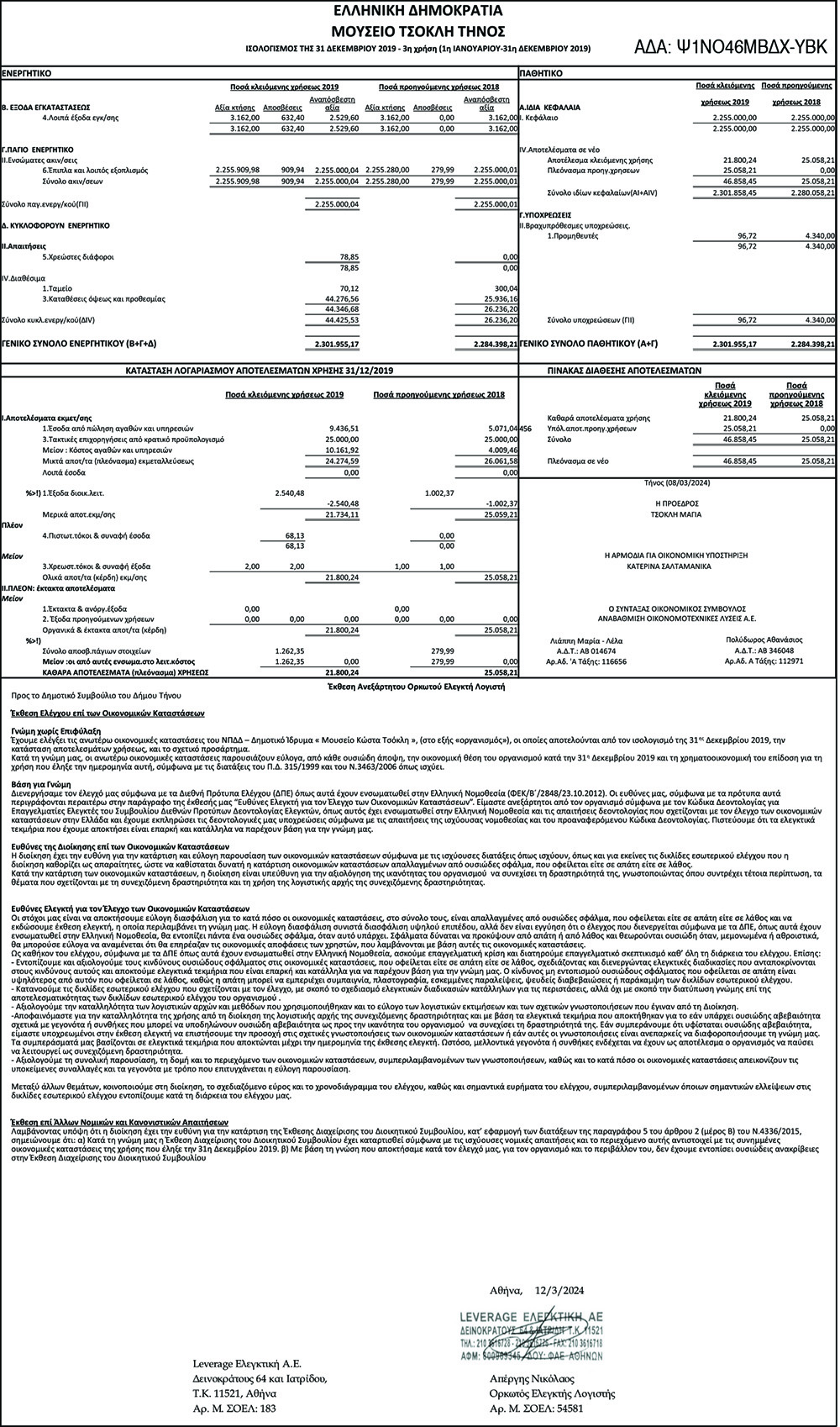 Ισολογισμός 2019, από Δημοτικό Ίδρυμα Κώστα Τσόκλη Κείμενο Βλέπε εικόνα. Αριθμός Φύλλου: Αριθμός Φύλλου 6492 Κατηγορία: Κατηγορία Ισολογισμοί