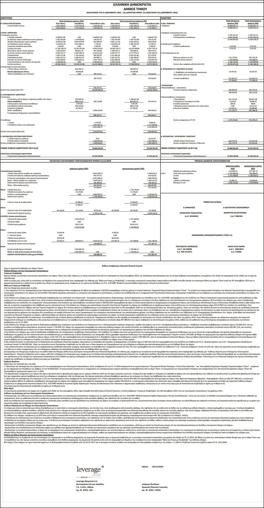 Ισολογισμός 2023, από Δήμο Τήνου Κείμενο Βλέπε εικόνα. Αριθμός Φύλλου: Αριθμός Φύλλου 6556 Κατηγορία: Κατηγορία Ισολογισμοί
