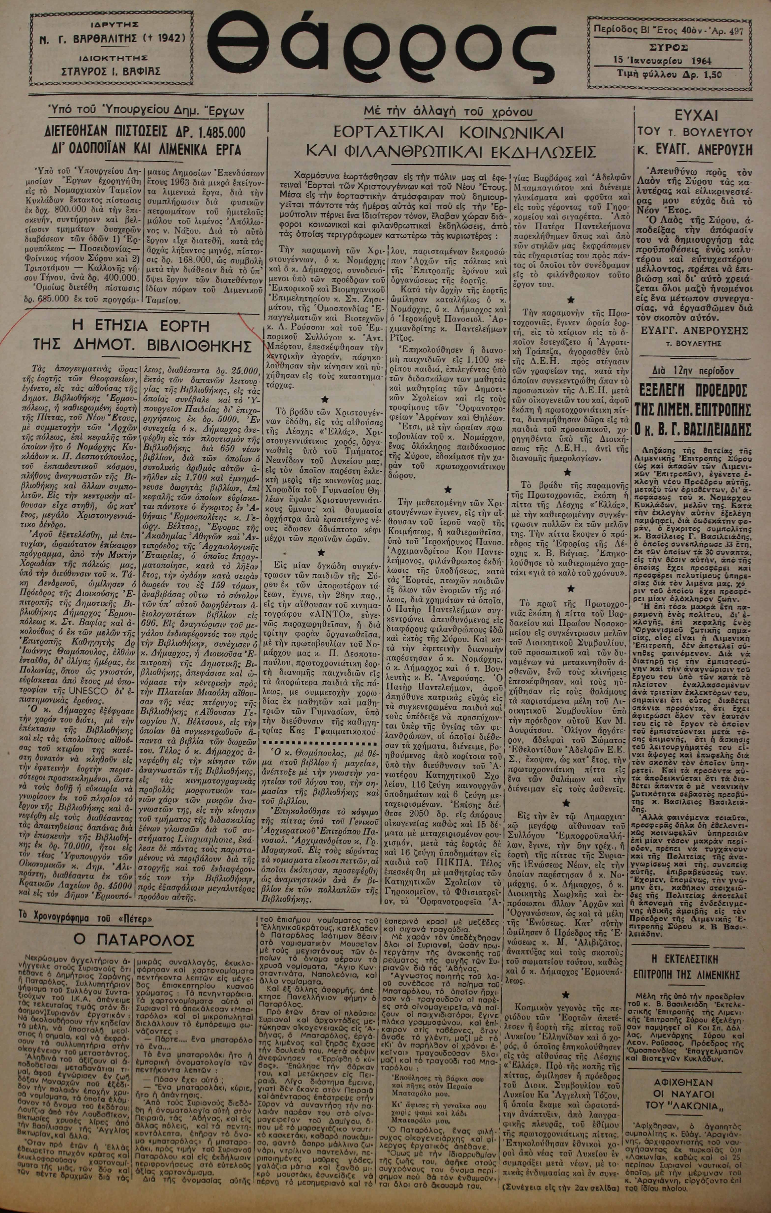 15 Ιαν 1964 [Αρ. Φύλλου 497]