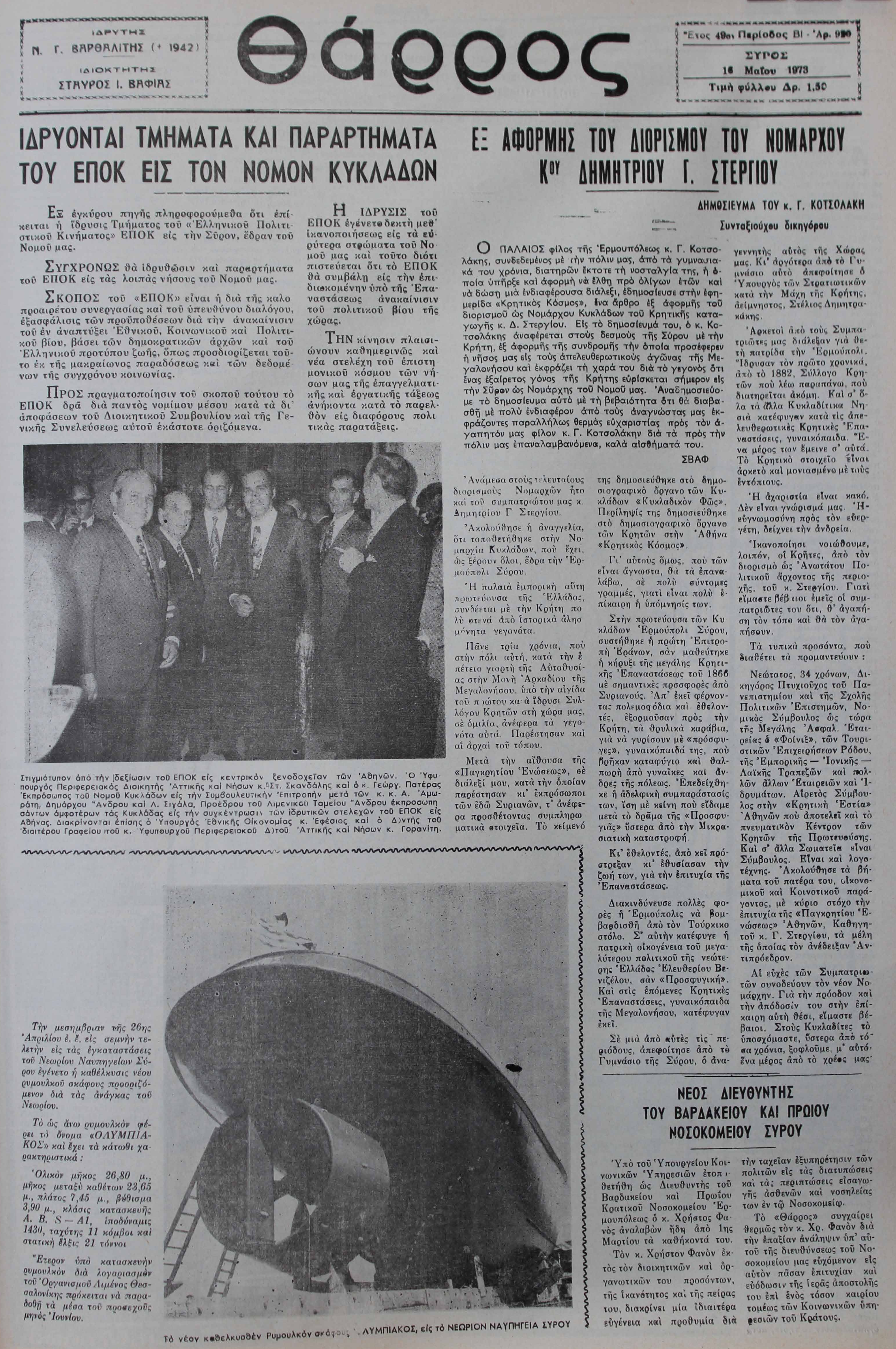 16 Μαϊ 1973 [Αρ. Φύλλου 920]