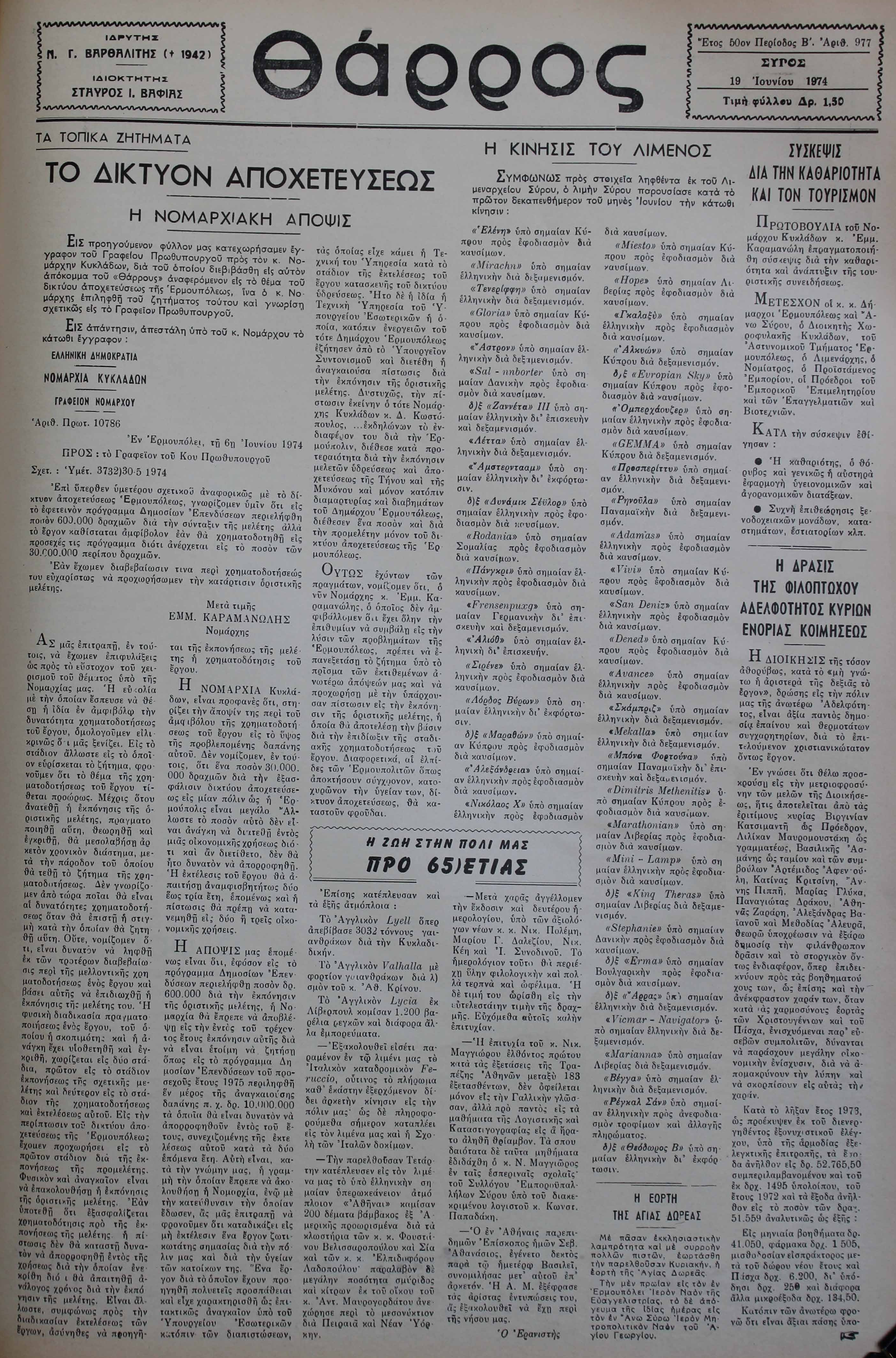 19 Ιουν 1974 [Αρ. Φύλλου 977]