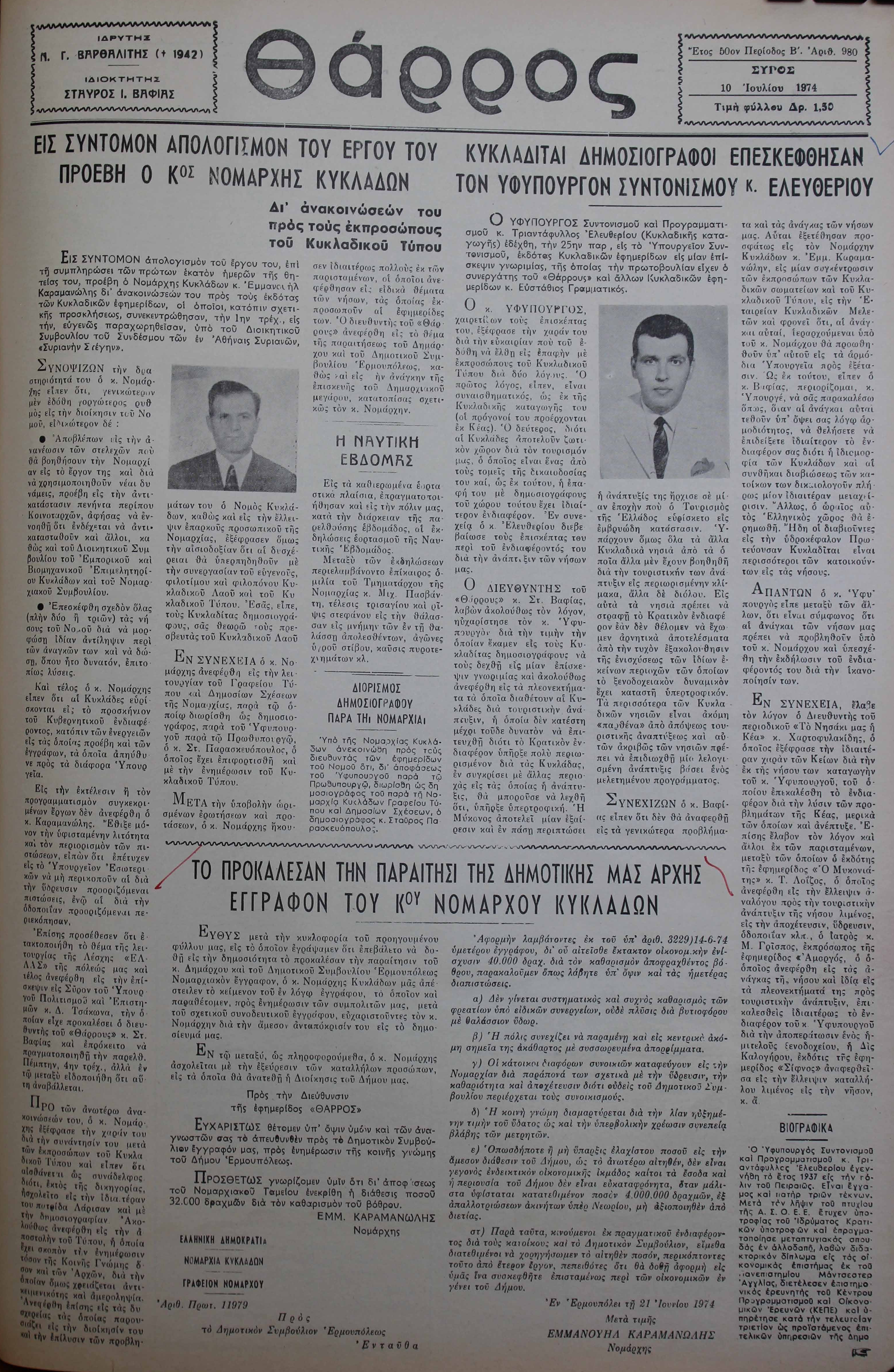 10 Ιουλ 1974 [Αρ. Φύλλου 980]