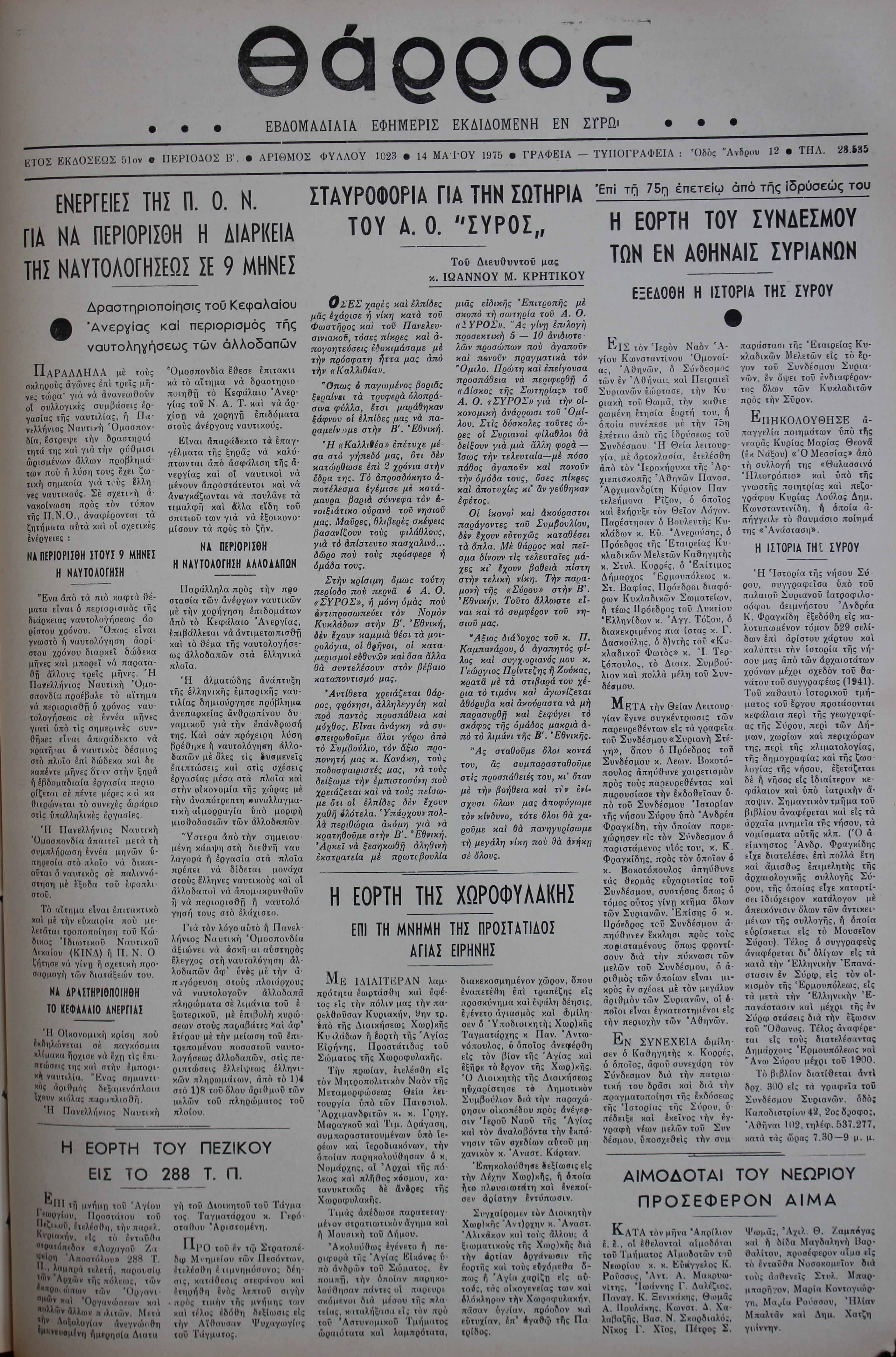 14 Μαϊ 1975 [Αρ. Φύλλου 1023]