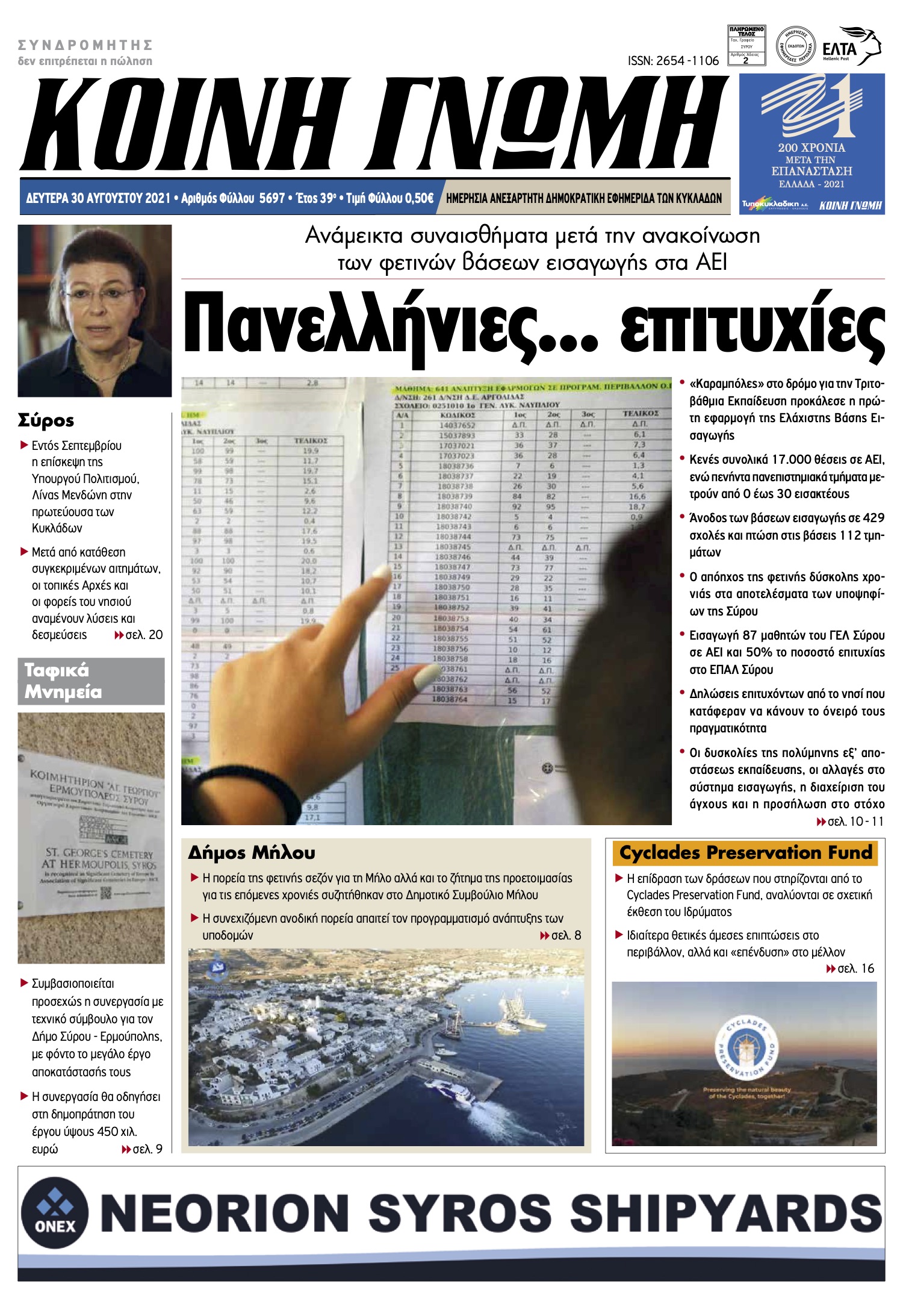 30 Αυγ 2021 [Αρ. Φύλλου 5697]