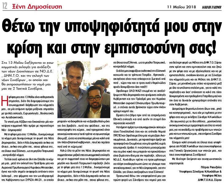 Ξένη Δημοσίευση. Θέτω την υποψηφιότητά μου στην κρίση και στην εμπιστοσύνη σας! Πέτρος Ραουζαίος Κείμενο Βλέπε εικόνα Αριθμός Φύλλου: Αριθμός Φύλλου 4874 Κατηγορία: Κατηγορία Ανακοίνωση