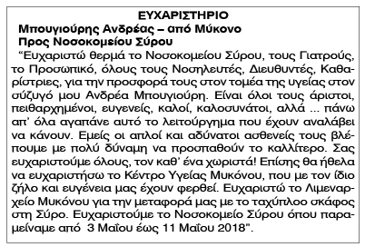 Ευχαριστήριο Ανδρέα Μπουγιούρη Κείμενο Βλέπε εικόνα Αριθμός Φύλλου: Αριθμός Φύλλου 4878 Κατηγορία: Κατηγορία Ευχαριστήριο