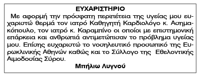 Ευχαριστήριο Μπήλιως Λυγνού Κείμενο Βλέπε εικόνα Αριθμός Φύλλου: Αριθμός Φύλλου 4898 Κατηγορία: Κατηγορία Ευχαριστήριο