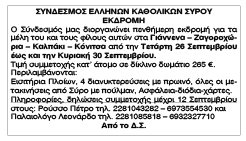 Ανακοίνωση του Συνδέσμου Ελλήνων Καθολικών για πενθήμερη εκδρομή Κείμενο Βλέπε εικόνα Αριθμός Φύλλου: Αριθμός Φύλλου 4949 Κατηγορία: Κατηγορία Ανακοίνωση