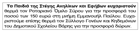 Ευχαριστήριο Στέγης Ανηλίκων Κείμενο Βλέπε εικόνα Αριθμός Φύλλου: Αριθμός Φύλλου 4972 Κατηγορία: Κατηγορία Ευχαριστήριο