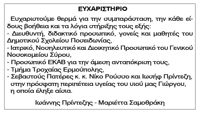Ευχαριστήριο Ιωάννη Πρίντεζη και Μαριέττας Σαμοθράκης Κείμενο Βλέπε εικόνα Αριθμός Φύλλου: 4993 Κατηγορία: Ευχαριστήριο