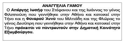 Αναγγελία Γάμου Απέργη Ιωσήφ - Φανερού Άννας Κείμενο Βλέπε εικόνα Αριθμός Φύλλου: 4998 Κατηγορία: Αναγγελία Γάμου