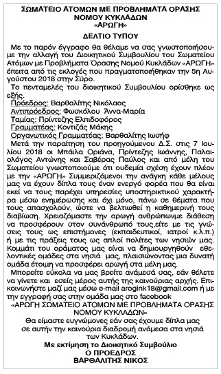 Δελτίο Τύπου Σωματείου ατόμων με προβλήματα όρασης ΑΡΩΓΗ Κείμενο Βλέπε εικόνα Αριθμός Φύλλου: Αριθμός Φύλλου 5013 Κατηγορία: Κατηγορία Δελτίο Τύπου