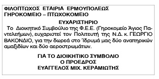 Ευχαριστήριο Φιλόπτωχου Εταιρίας Ερμούπολης Κείμενο Βλέπε εικόνα Αριθμός Φύλλου: 5019 Κατηγορία: Ευχαριστήριο
