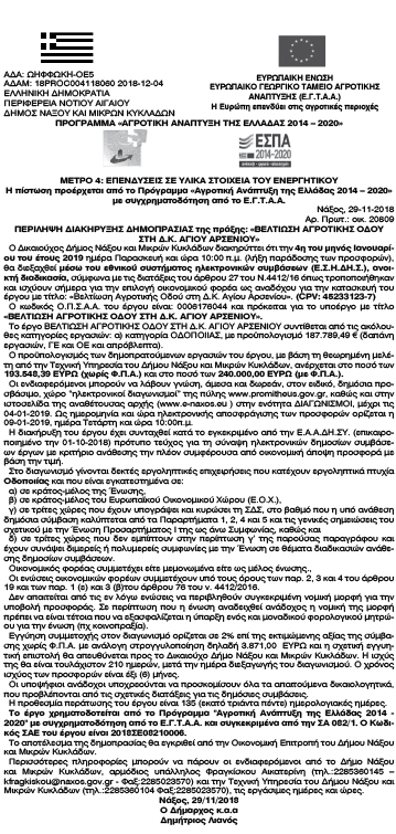 Βελτίωση Αγροτικής Οδού στην Τ.Κ. Αγίου Αρσενίου Κείμενο Βλέπε εικόνα Αριθμός Φύλλου: 5022 Κατηγορία: Προκήρυξη Έργων - Δημοπρασίες